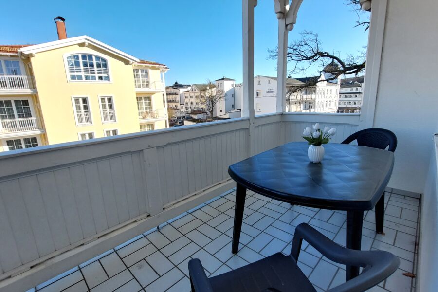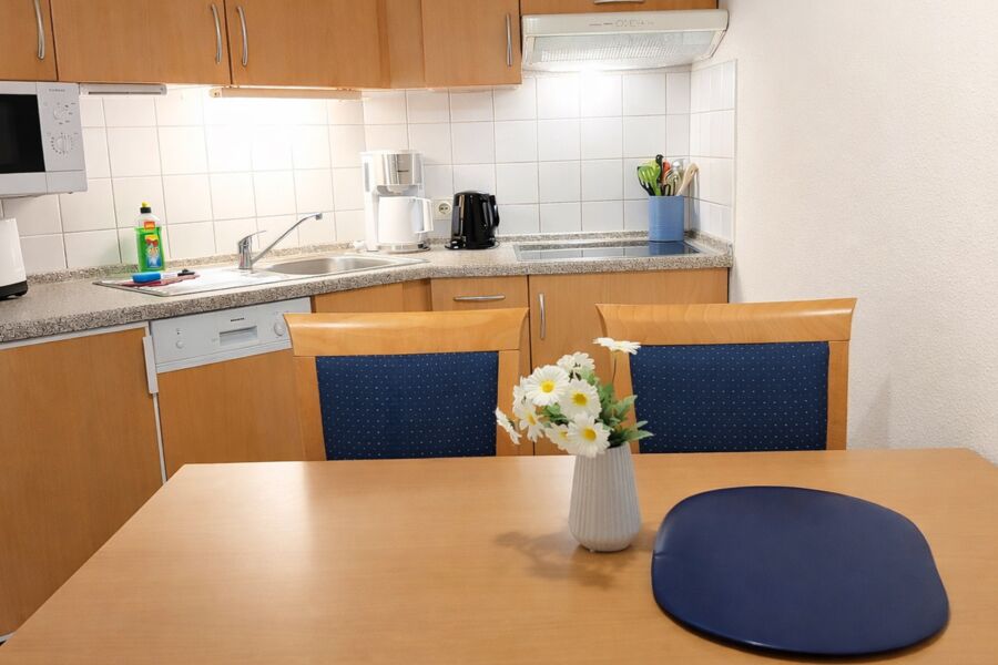 Ihre Nichtraucher-Ferienwohnung 90307 befindet sich im 2. Obergeschoss des Hauses. Die 2 Zimmer - Wohnung hat eine Größe von ca. 56 qm und verfügt über einen überdachten Frühstücks-Balkon. Neben dem Wohnraum gibt es einen separaten Schlafraum, eine separate Küche, Flur, ein Badezimmer mit Waschtisch, Dusche, WC und einen Abstellraum. Im Schlafraum befindet sich ein Doppelbett, ein Smart-TV, ein großer Kleiderschrank sowie verfügen die Fenster über Fliegengitter. Ein Zustellbett und ein Kinder-Reisebett gehören ebenfalls zur Ausstattung. Im Wohnraum können auf dem Schlafsofa weitere zwei Personen schlafen. Zur technischen Ausstattung gehören TV, Radio und kostenfreies WLAN. Die Küche ist mit Geschirrspülmaschine, Kühlschrank und diversen Kleingeräten komplett ausgestattet.