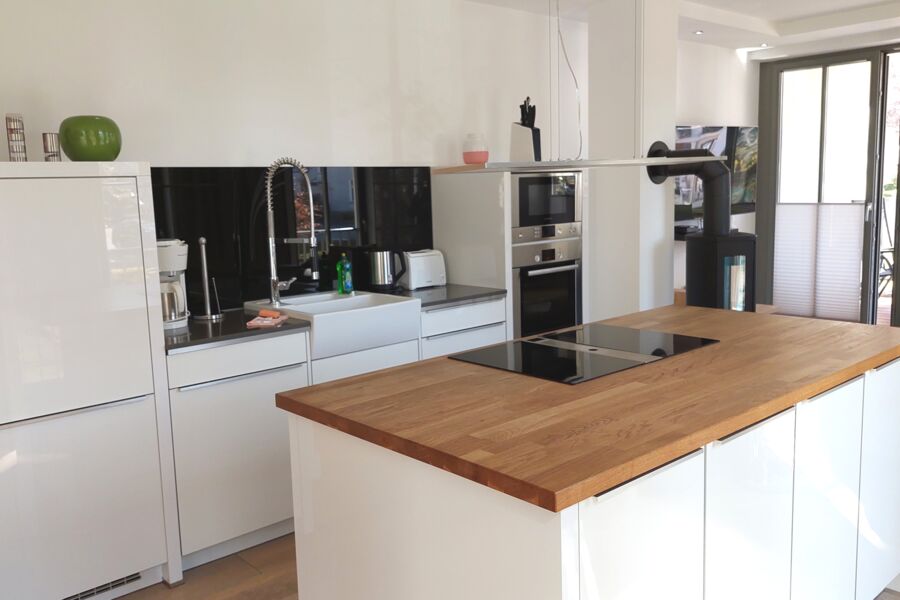Neben dem hochwertig ausgestattetem Wohnraum mit integrierter und moderner Wohnküche mit Essplatz erwarten Sie zwei großzügige und separate Schlafräume sowie zwei Badezimmer mit Regendusche, Waschtisch und WC. Das Wohnzimmer besticht durch seine offene Bauweise und lädt zum gemeinsamen Verweilen ein. Die technische Ausstattung umfasst einen Flachbildfernseher, eine Musikanlage und einen gebührenfreien W-Lan Zugang. In beiden Schlafräumen befindet sich jeweils ein großes und gemütliches Doppelbett sowie ein Einbaukleiderschrank. Das Hauptschlafzimmer zeichnet sich durch ein eigenen Bad aus. Die hochwertige Inselküche ist komplett mit Geschirrspülmaschine, Ceranfeld, Backofen, Mikrowelle, Kühlschrank mit Gefrierfach und weiteren Küchenhelfern ausgestattet. Als weiteres Highlight können Sie eine Waschmaschine und einen Trockner im Kellerbereich kostenfrei nutzen.