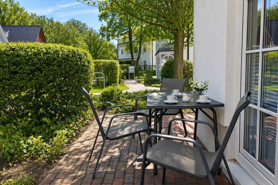 Ihre Nichtraucher-Ferienwohnung 9RB24 befindet sich im Erdgeschoss der Villa Sanddorn in ruhiger, rückwärtiger Lage. Die 3 Zimmer-Wohnung mit Südost und Südwest Terrasse hat eine Größe von ca. 55 qm und ist mit bis zu 5 Personen belegbar. Neben dem Wohnraum mit integrierter Küchenzeile gibt es zwei Schlafräume sowie ein geräumiges Badezimmer mit Waschtisch, Dusche und WC. Der größere Schlafraum ist mit einem Doppelbett, TV und einem Kleiderschrank ausgestattet. Das zweite Schlafzimmer verfügt über ein französisches Polsterbett sowie einen Kleiderschrank. Im Wohnraum können auf dem Schlafsofa zwei weitere Personen schlafen. Außerdem finden Sie im komfortablen Wohnbereich neben der Sitzecke mit TV, einen separaten Essplatz und den kostenfreien WLAN-Zugang. Die moderne Küche verfügt über eine Geschirrspülmaschine, Backofen, 4-Plattenherd, Kühlschrank, Mikrowelle und diverse Kleingeräte. Die Terrasse lädt zum gemeinsamen Essen und Verweilen ein. Ein wohnungseigener PKW-Stellplatz steht Ihnen in der Tiefgarage (Doppelparker 1,60 m hoch) zur Verfügung.